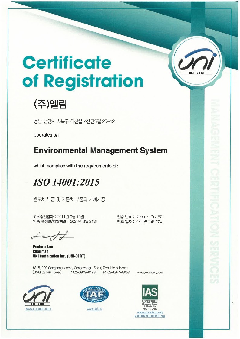 ISO14001 > 인증현황