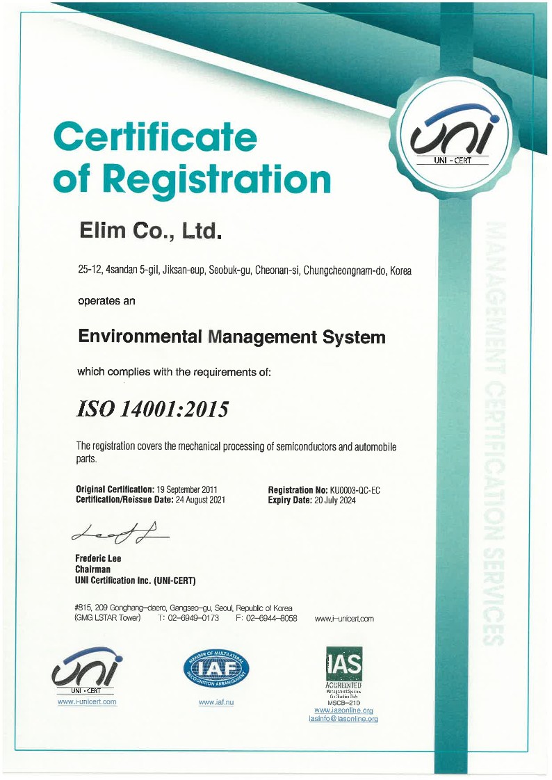 ISO14001 > 인증현황